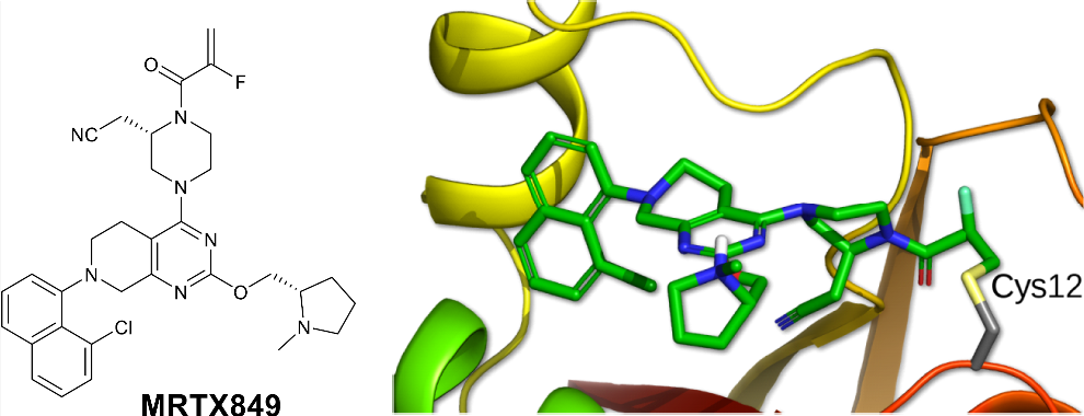 Early development was focused on developing chemical matter not covered by existing composition of matter patents. Activity against the known KRAS G12C mutant immortalized MIA PaCa-2 and NCI-H358 cell lines, as these cell lines harbored the KRAS G12C mutation, and time-dependent modification of the KRAS G12C recombinant protein were key considerations. Finally, the development of robust synthetic routes to enable structure-based in silico designs was another key consideration.